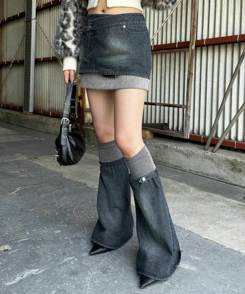 ダメージ風の加工が存在感あるトップスで フロントのギャザーで丈感も変えていただけます!✨ トレンドのレッグウォーマー合わせでおしゃれ見えアイテムです!