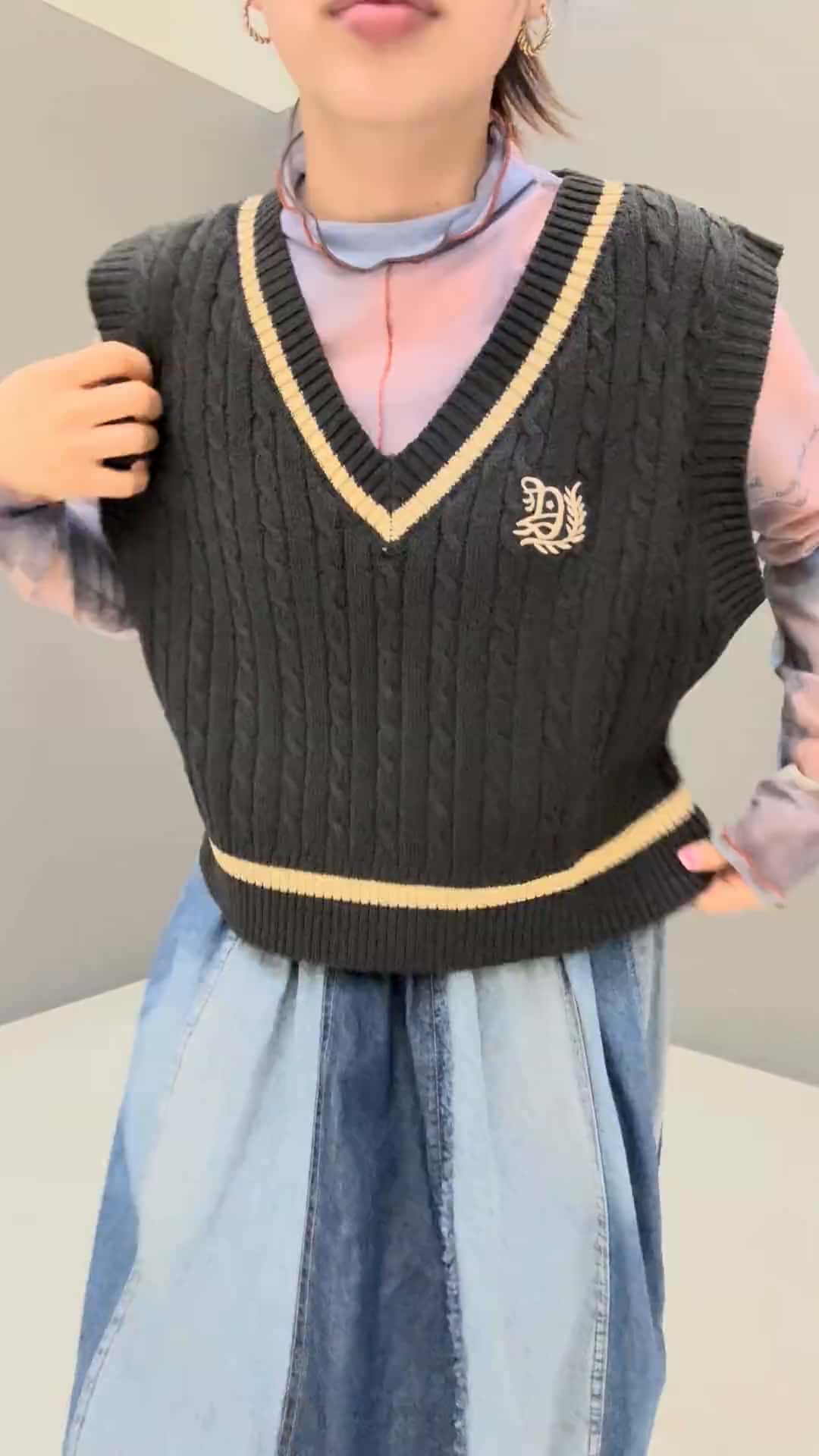 オリジナル柄プリントがかわいいシアープルオーバーはベストと合わせると露出度抑えられます🌇 配色がアクセントになって重ね着にもおすすめ😌❤️ 1枚でこなれ感出せるアイテムです!!